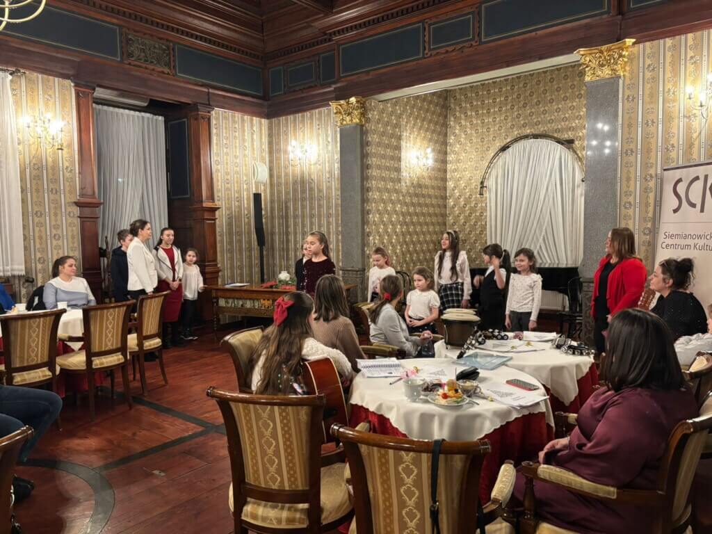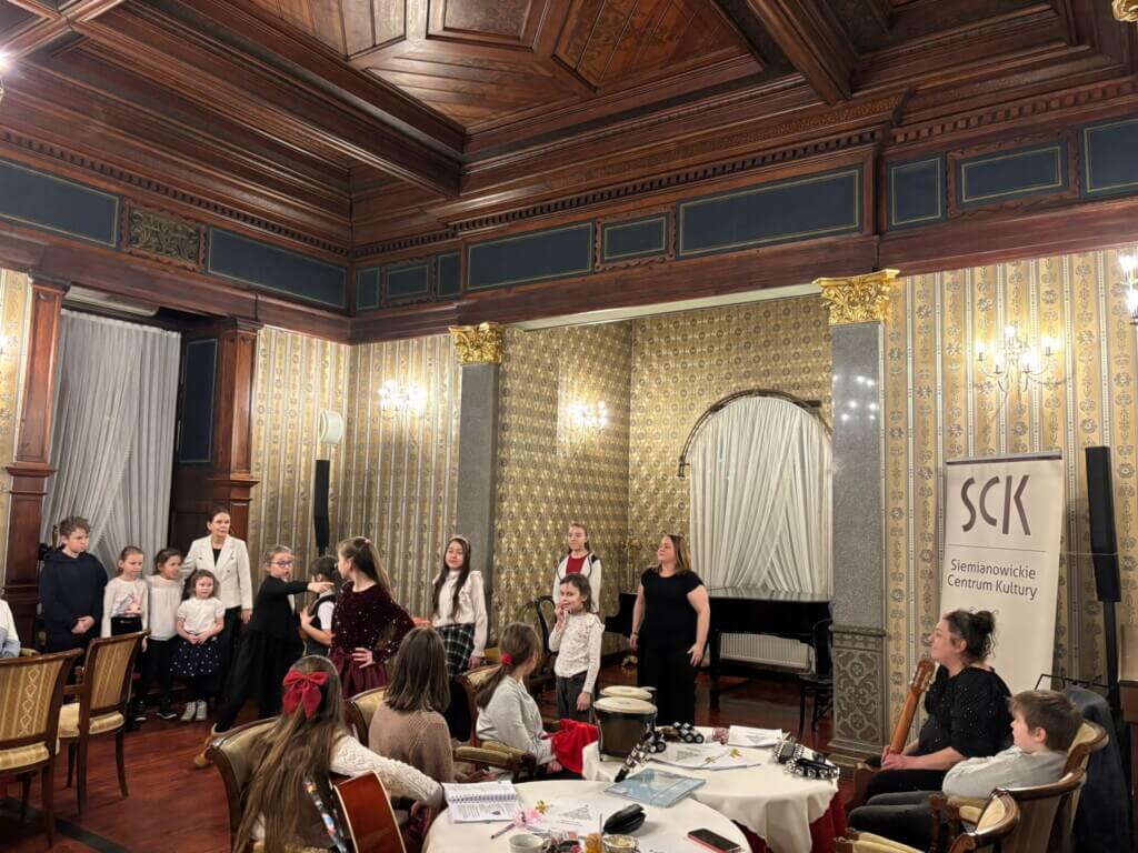 Ten cudowny wieczór, pełen ciepła i radości, rozpoczęliśmy od znakomitego występu naszej najmłodszej grupy świetlicowej, która zaprezentowała dwa rewelacyjne świąteczne pokazy taneczne. W dalszej części spotkania śpiewaliśmy znane polskie kolędy, pastorałki i piosenki bożonarodzeniowe, przy wspaniałym akompaniamencie niesamowitej grupy dzieci z naszego siemianowickiego MDKu na czele z Panią Ewą Janik. Był to niesamowity czas kultywowania tradycji śpiewania polskich kolęd, a także okazja do spotkania się i wspólnego kolędowania.